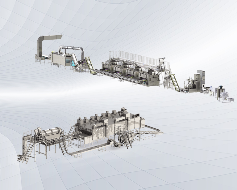 該生產(chǎn)線(xiàn)廣泛用于堅(jiān)果、籽類(lèi)、裹粉顆粒食品、薯片、薯?xiàng)l、膨化食品等加工生產(chǎn)。